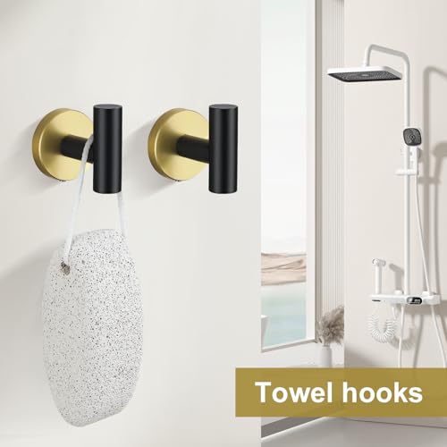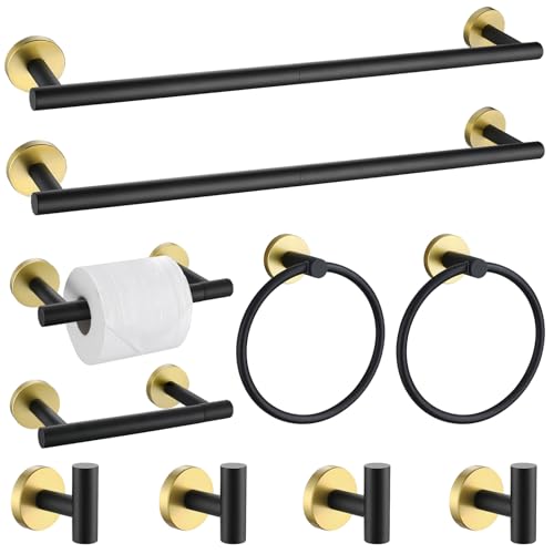 Black and Gold Towel Bar Bathroom Hardware Accessories Set, 10 Pieces Upgraded Round Toilet Paper Holder Towel Rack for Bathroom Wall Mounted, 23.6 Inch Stainless Steel Towel Rods for Bathroom