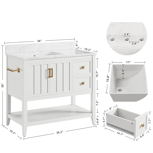 IRONCK 36″ Bathroom Vanity with Sink, Bathroom Cabinet with 2 Drawers & Open Shelf for Guest Baths Master Suites or Rental Units, Industrial White