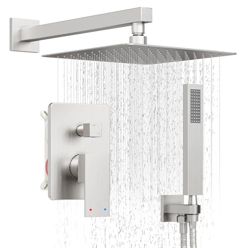 Brushed Nickel Shower System, Shower Faucet Set with 10-Inch Rain Showerhead and Handheld Spray, Wall Mounted High-Pressure Showerhead Combo Set Included Valve and Trim, Brushed Nickel