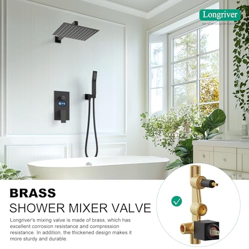 Shower Faucet Set with Hydro Power Temperature Display, Shower System Bathroom 10 Inches Shower Head with Handheld Spray, Wall Mounted Shower Fixtures with Shower Valve and Trim Kit, Matte Black