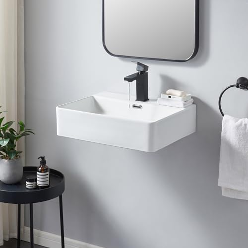 SHACO Wall Mounted Bathroom Sink, 20×16 Inch Small Ceramic Bathroom Sink with Wall Mount Screw, Commercial Wall Hung Floating Sink White Single Hole Lavatory Powder Room Washroom