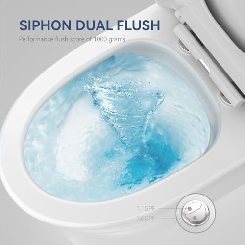 ✅【Water Saving Performance】: Siphon Flushing. Toilets with powerful dual flush 0.8/1.28 GPF. A 1.28-gallon flush provides significant water savings of up to 16,500 gallons per year, compared to a 3.5-gallon toilet, without sacrificing performance