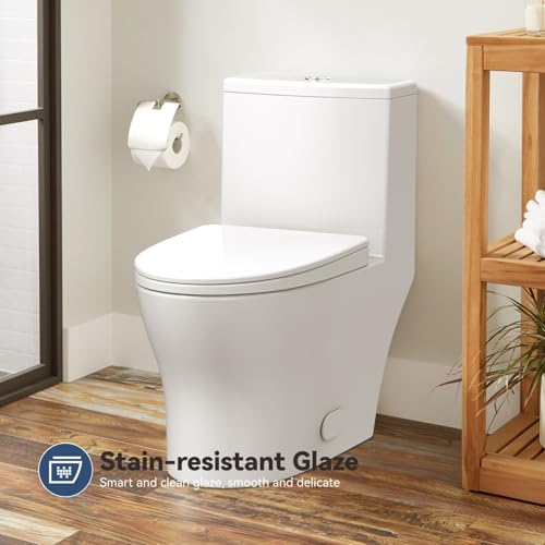✅【MODERN DESIGN】: Our Elongated One Piece Toilet features a sleek and contemporary design that will elevate the style of any bathroom. With clean lines and a minimalist aesthetic, it is the perfect addition to a modern or transitional space.Chrome, dual-flush buttons make these toilets eco-friendly and elegant, while their soft-close, quick-release seats make everyday use convenient.