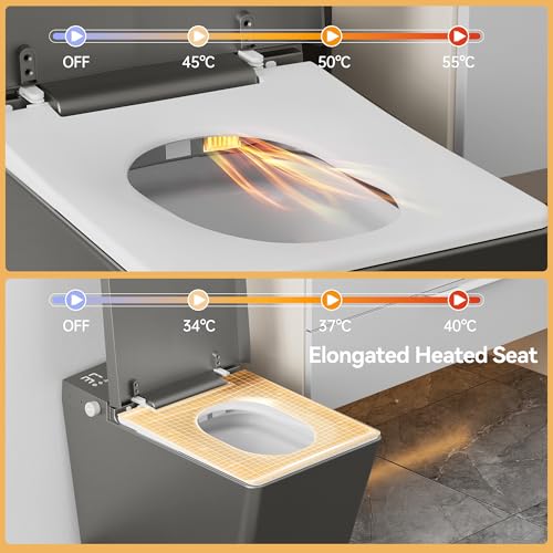 【ADJUSTABLE TEMPERATURES】: Experience ultimate comfort with instant warm water and a heated bidet seat, customizable with 4 adjustable water temperatures. Adjust the temperature of the seat, dryer and water to your preference with four settings: normal, 34°C, 37°C and 40°C. Enjoy luxurious comfort no matter the season.
