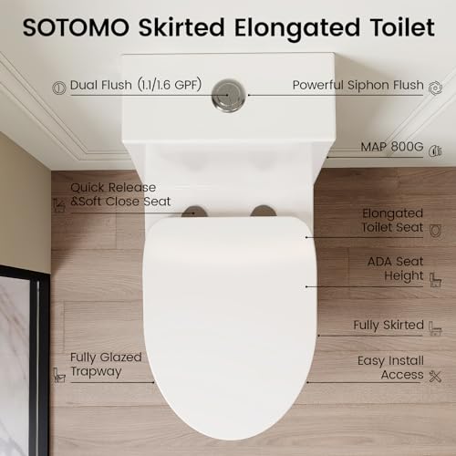 What You Get:The package includes the ADA compliant toilet,soft-close toilet seat, pre-installed flush valve, premium wax ring, floor bolts, toilet tank lid, side cover sets and installation instructions. A 12-month worry-free warranty, and our life-time friendly customer service form SOTOMO are also included.