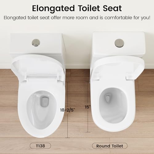 High-Efficiency Dual Flush Toilet: The 1.1/1.6 GPF siphon dual flush system ensures powerful flushing, with an average flush volume of less than 1.28 GPF, saving water and reducing water bills. It is an eco-friendly choice for daily life.