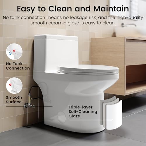 Quick-Release & Soft-Close Toilet Seat: The quick-release feature simplifies installation and removal, allowing for easy cleaning. The soft-close seat extends the lifespan of the ceramic bowl and operates quietly, minimizing disturbance