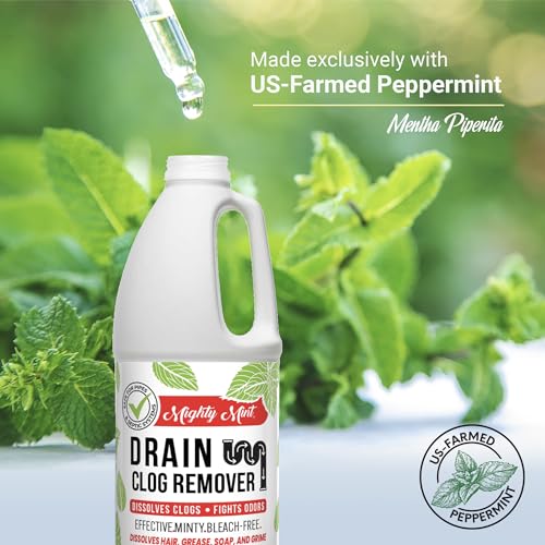 Mighty Mint Drain Clog Remover, Safe for Pipes and Septic, Dissolves Hair & Grease, Clears Blocked Drains and Deodorizes, Natural Mint Scent, 32oz