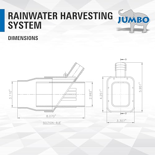 JUMBO Rooftop Rainwater Harvesting System from Downspouts Diverter Size 2” x 3”