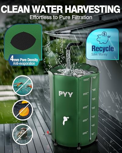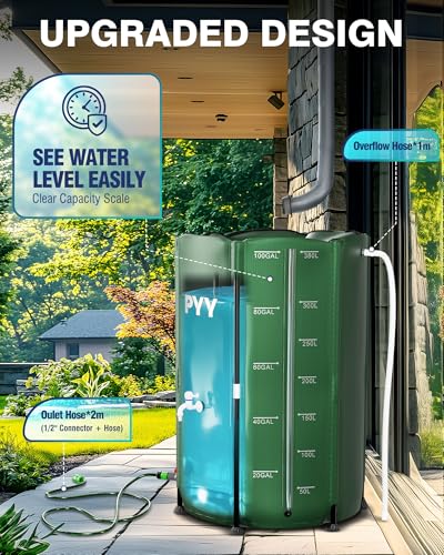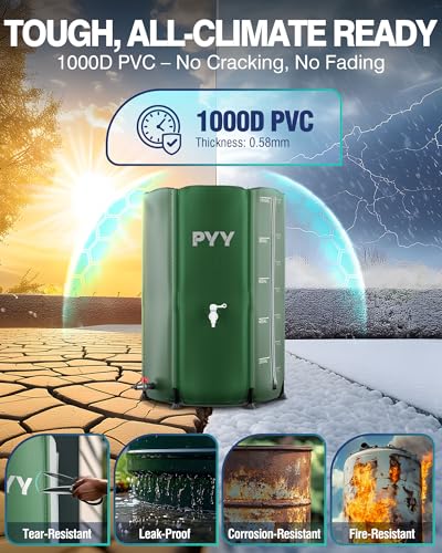 DURABLE & STURADY: Our rainwater collection barrel is made from high quality 0.5mm thick 1000D PVC, lead-proof, corrosion-resistant, sun-resistant, and crack-resistant. Equipped with 6 robust legs of 1.5mm thickness, the rain storage barrel holds 100 gal water steadily. Enjoy the convenience of irrigation or cleaning in various areas, while our rain water catcher withstands the test of time.