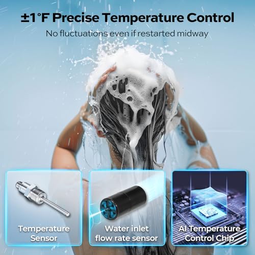 Stable Temperature Control: The built-in chip adjusts heating power 20,000 times per second, keeping water temperature stable within 1°F for a comfortable shower experience