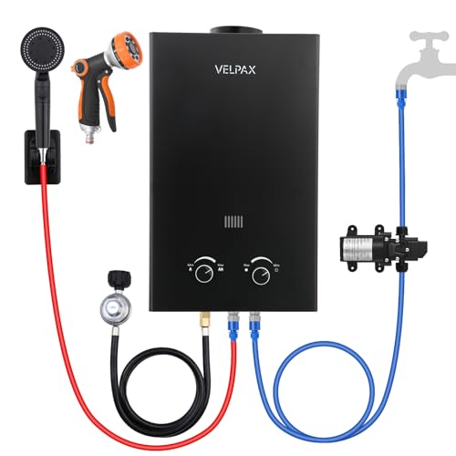 Tankless Water Heater Propane,2.11GPM 8L Outdoor Portable Water Heater,with 2 GPM Water Pump, with Digital Display Multi-Protection for Camping Trips Boat Cabins