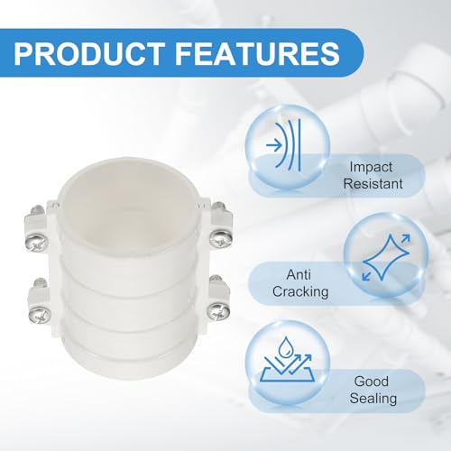 PATIKIL 2 Inch Water Pipe Repair Clamp PVC Leak Sealer for OD 50mm PE/PPR/Pipes and Plumbing (Length 2.7 Inch), White