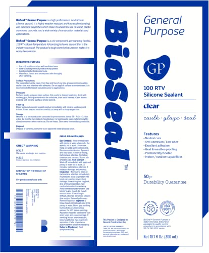 Clear BioSeal 100% Silicone Sealant Caulk General Purpose, Waterproof and Low Odor 10.1 Ounce Cartridge, Clear, (Pack of 1)