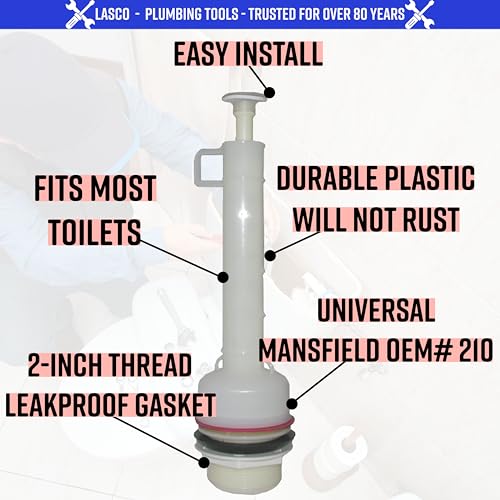 LASCO 04-2108 Toilet Flush Valve Mansfield 2-Inch Plastic, Rounded Body, Unit Raises Up To Flush. Toilet Tank Flush Valve, Rounded Body, Unit Raises Up To Flush, Fits Mansfield, OEMNo. 210, Boxed. 2-Inch Plastic thread. Round body raises up to flush. For 2 piece toilets. For 2 piece toilets. Universal – fit most.