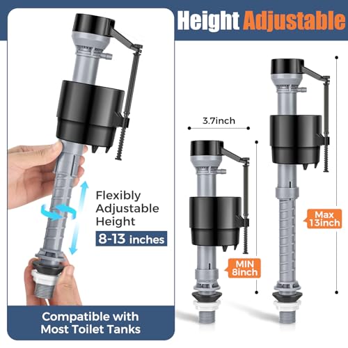 【Universal Compatibility】Compatible with most toilet models and brands, this toilet fill valve replacement kit features a US standard G15/16″ inlet. Its height is easily adjustable from 8 to 13 inches, ensuring a perfect fit for various tank sizes