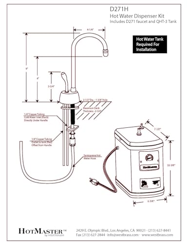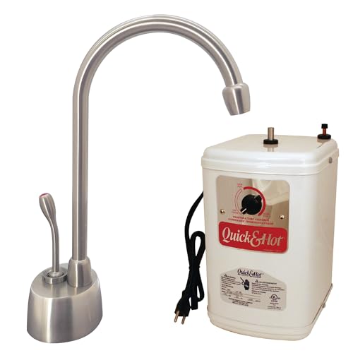 The Westbrass Velosah Single-Handle Hot Water Dispenser Faucet with Instant Hot Water Tank, offers quick and easy water control and its 1-Handle automatically turns off hot water for your safety. The perfect addition for your kitchen bar sink, game room bar or covered patio outside kitchen area for busy lifestyle convenience. The faucet features a high-arc spout for an attractive appearance. A QHT 1300W instant hot water tank, plugs into 120V and is included with this faucet and delivers 60 cups per hour of instant hot water for cooking, beverages, cleaning and more. Easy fingertip dial temperature adjustability from 140-degrees to 190-degrees. Mounting materials are included for convenient, single-hole installation. Available in a variety of stylish finishes, this item is sure to complement your existing fixtures. Be sure to check out our other model styles and VISIT OUR WESTBRASS STOREFRONT for more Kitchen and Bath items to stylize your home with convenient functionality and beauty.