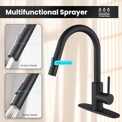 PULL-OUT DESIGN: Kitchen sink faucet with sprayer pull-out, matte black stainless steel finish. single handle high arc kitchen faucet, making your kitchen room simple