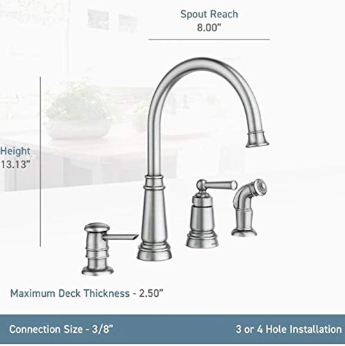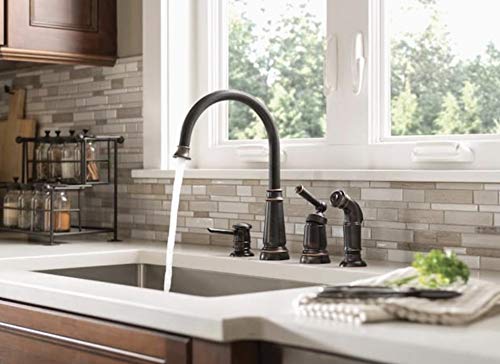 Be the first to review “Moen Mediterranean Bronze One-Handle High Arc Widespread Kitchen Faucet, 4-Hole Setup with Soap Dispenser, 87042BRB”