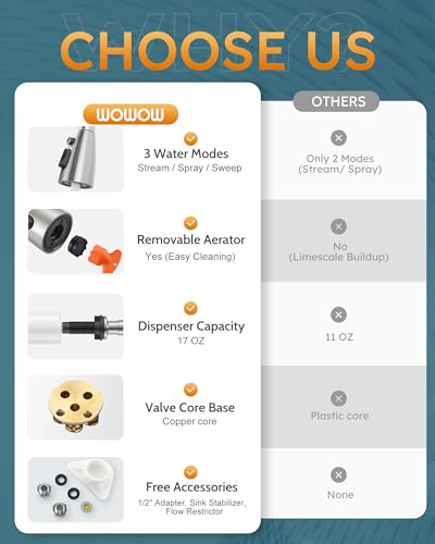Be the first to review “WOWOW Kitchen Faucet with Soap Dispenser: 304 Stainless Steel Kitchen Sink Faucet with Pull Down Sprayer 3 Modes, Single Handle High Arc Mixer Taps for Sink, RV, Laundry, Bar (Brushed Nickel)”