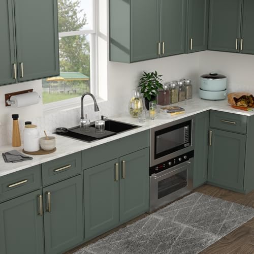 33×22 Black Drop in Kitchen Sink — Overall Size: 33″L x 22″W x 9″H, Inner Bowl Size: 31″L x 17-3/4″W x 8-3/4″H (Minimum cabinet size is 36″); Standard 3.5″ drain fits garbage disposals (Note: Package doesn’t include the garbage disposal and it’s flange).