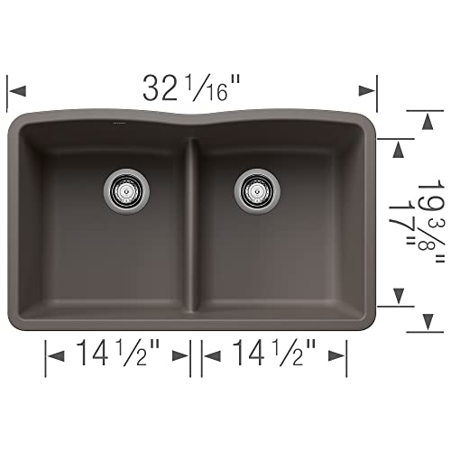 ✅ BLANCO 443106 Diamond Silgranit 50/50 Double Bowl Undermount Kitchen Sink with Low Divide, 32″ L X 19.36″ W – Volcano Gray