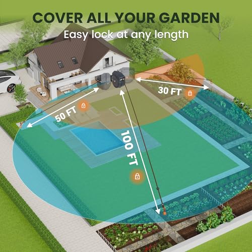 Robust Lock Mechanism: The Giraffe Tools hose reel has a patented design certified any-lock mechanism that locks at any length, cover every corner of your garden. And specially-designed stop ball can protect hose when it retracts.