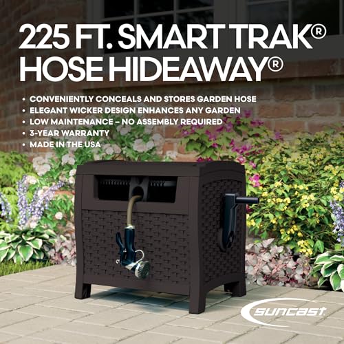 Suncast Hose Reel with Smart Trak Hose Guide, Water-Tight Connection, Durable Resin Construction, 225′ Hose Capacity, Brown, Made in the USA