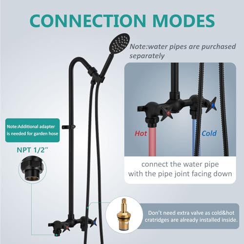 Accessories Provided:Aolemi outdoor shower fixtures comes with all the accessories needed for installation, including stainless steel screws, plumber’s tape and extra spare washers and installation instruction