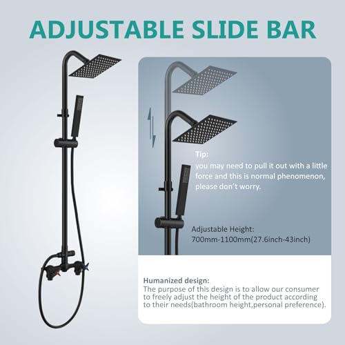 Aolemi Wall Mount Outdoor Shower Kit,Outdoor Shower Fixtures Faucet System with Handheld Spray,Double Handle 6 Inch Center Exposed Shower,with 6″ Shower Head Matte Black