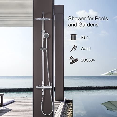 SS304 Outdoor Shower Kit – Brushed Nickel, High Pressure Shower Head with Handheld, Complete Shower System