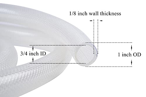 3/4″ ID x 1″ OD – 10 Ft High Pressure Braided Clear PVC Tubing Flexible Vinyl Tube, Heavy Duty Reinforced PVC Hose Tubing, BPA Free and Non Toxic