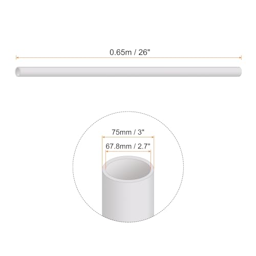 2.7″ x 3″ PVC Pipe 26″ Plastic Rigid Tubing Round High Impact Drain Pipe, [for Greenhouse Garden Home HVAC Plumbing] – 67.8x75mm / White