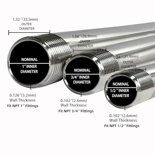 GeilSpace 3/4″ x 36″ Stainless Steel Pipe, 304 Pipe Nipple Fits Standard 3/4 Inch Threaded Pipes and Fittings, DIY Industrial Metal tube (2 PCS)