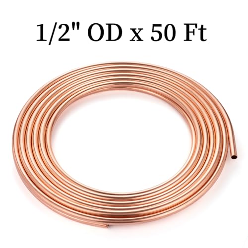GOORY Copper Tubing 1/2″ OD x 0.445″ ID x 50 Ft – 99.9% C12200 Pure ACR Tube – ASTM B280 Refrigeration T2 Copper Tube Soft Coil – Round Seamless Tubing for Refrigerator HVAC System Industry DIY