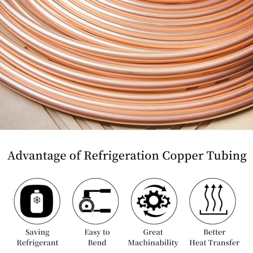 【Superior Performance】: Refrigeration copper tubing is made of Annealed UNS C12200 grade copper and conforms to the ASTM-B280 specification. It has exhibits excellent thermal conductivity, durability and corrosion resistance. In various innovative scenarios, it can maximize performance and sustainability.