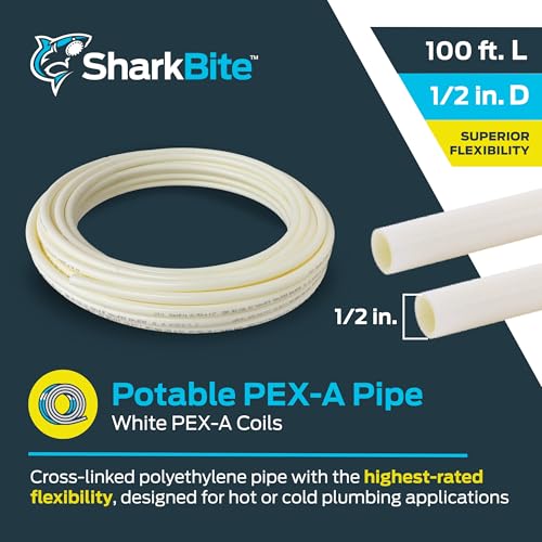 Upgrade your plumbing and home improvement projects with SharkBite PEX-A pipe. This flexible tubing withstands kinking and bends easily around corners, reducing the need for fittings and installation time. Designed to handle expansion and contraction during temperature changes, it’s an ideal choice for hot and cold water lines. PEX-A allows for fluting before insertion with expansion-style fittings to help improve water flow. Made of durable polymer, this coil supports UV exposure up to six months and is built for lasting performance. Compatible with PEX expansion (F1960), push-to-connect (ASSE 1061), plastic crimp (ASTM F2159), and brass crimp (ASTM F1807) fittings. With certified tolerance to oxidative degradation, it’s suitable for water service lines and underground burial, including concrete applications. Manufactured in the USA.