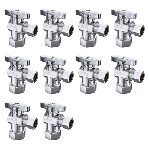 10 Pack Angle Stop Valve,1/2″ Nominal Comp (5/8″OD Comp,Fits 1/2″ Copper Pipe) X 3/8” OD Compression Quater Turn Elbow Valve, 5/8 Inches OD X 3/8 Inches OD Shut Off Valve,Chrome