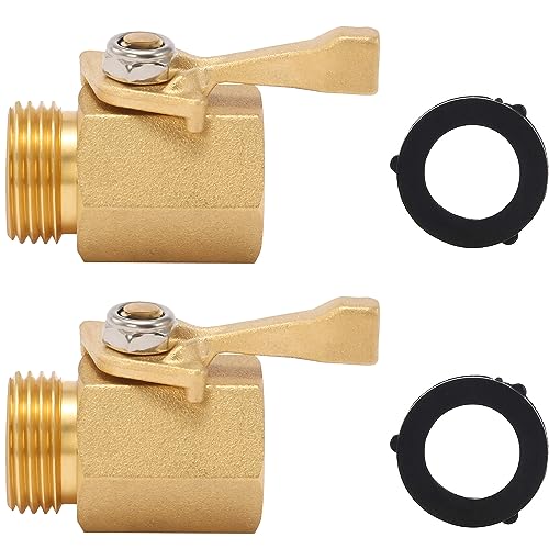 M MINGLE Heavy Duty Brass Garden Hose Shut Off Valve, 3/4 Inch, 2-Pack with 2 Hose Washers