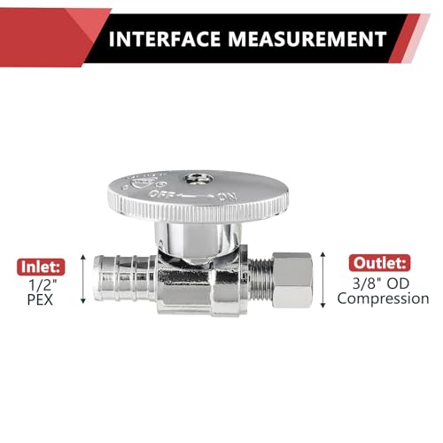(Pack of 10) EFIELD 1/4 Turn Straight Stop Valve 3/8″ OD Compression X 1/2″ Crimp Barb Pex Chrome Plated Brass,(VALVE085-10PCS)
