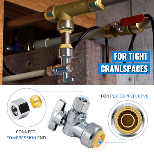 【PACKAGE INCLUDES】: Pushfit Angle Shut Off Valve 1/2 Inch x 3/8 Compression (12 PCS); 1/2 Inch Disconnect Clip (1 PC).