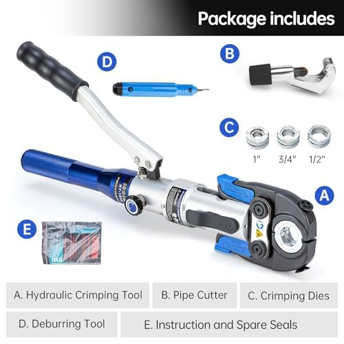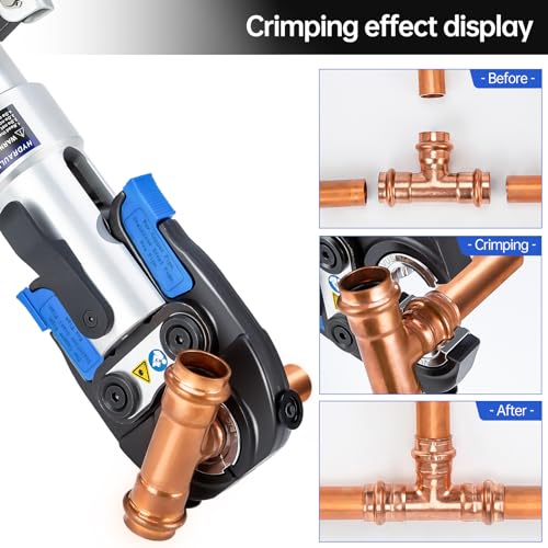 IBOSAD Copper Tube Fittings Hydraulic Pipe Crimping Tool with 1/2 inch,3/4 inch and 1 inch Jaw Copper Pipe Propress Crimpers Pressing Pliers,Suit for Narrow Space and Tee Fitting