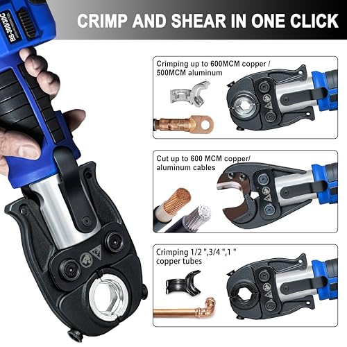 ALL-IN-ONE MULTIFUNCTION: Combines cable crimping , copper pipe crimping , and cable cutting (max 600MCM)—eliminates the need for multiple tools and saves 30%+ time & cost.