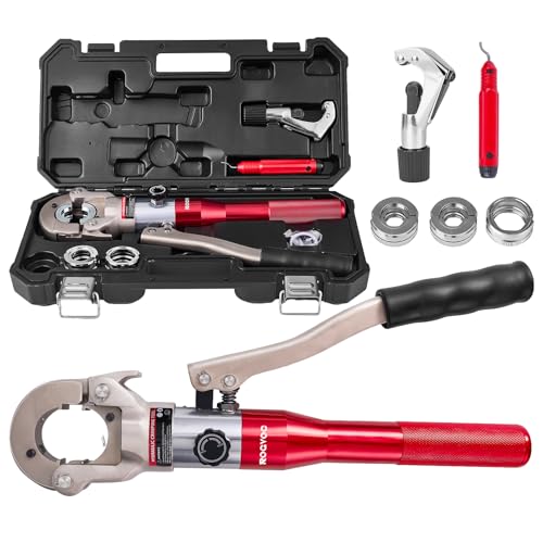 Propress Tool, Hydraulic Pipe Crimping Tool with 1/2, 3/4, 1 Inch Jaw for Copper Tube Press Crimper Pressing Pliers, Pipe Cutter and Deburring Kit