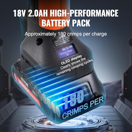 Long-Lasting Battery Life: Comes with 2pcs 18V 2.0Ah batteries, our pro press copper crimper tool allows up to 180 crimps per full charge, leading the industry in performance. Suitable for extended and high-volume work requirements.