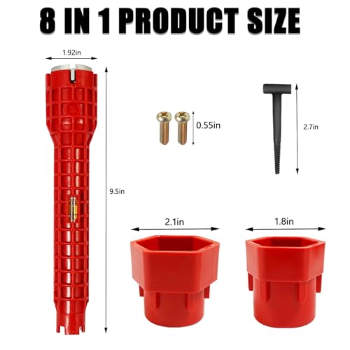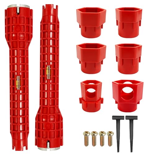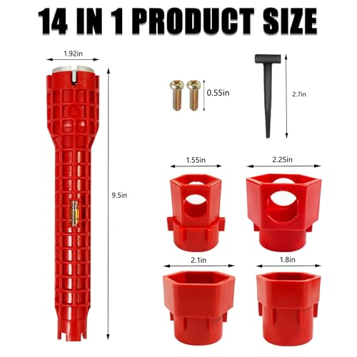 The faucet and sink installer is made of engineering grade ABS plastic and high-strength zinc alloy, which is lightweight, durable, and not easily deformed. It is not only a plumbing tools, but also a level that can be used for mural and shelf installation.Designed Specifically for Narrow Spaces, It Can Easily Reach and Operate Difficult To Reach Areas. The Design Allows You To Easily Rotate 360 °, Including But Not Limited To P-Shaped And S-Shaped Pipe Elbows.Open slots can easily connect to existing water supply pipelines, making disassembly and replacement of accessories easier, simpler and more convenient than traditional tools.8 in 1 and 14 in 1 Set includes- 2 pipe and 2 sink installer, 6 stripping attachments, 4 screws, 2 T-shaped stripping attachment. The sink installer tool can be replaced with different removal heads for different nuts.Faucet and sink installer tool can be used to install pipes under bathrooms, toilets, kitchens, and sinks. The faucet installer is most suitable for water supply nuts, shut-off valves, filter baskets, water supply pipe nuts, and faucet screws.
