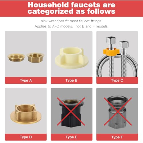 【MULTI-FUNCTION SINK WRENCH】Applicable to 95% of the faucet nut, a sink wrench to solve the troubles of toilets, kitchens, and under sink wrench faucet joints removal and installation.Suitable for supply nuts, shut off valves, strainer baskets, supply line nut, faucet nuts.