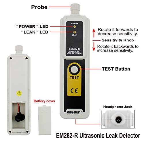 Precise Leak Location for Efficient Fault Detection: Dual LED & Audio Alarm, Utilizing advanced ultrasonic sensing technology, the detector can identify ultrasonic emissions caused by gas or liquid escaping through tiny openings. When the probe approaches a leak, the “LEAK” LED lights up and the ticking tone in the headphones increases in frequency. The higher the frequency, the closer you are to the leak, allowing for quick and accurate location of the problem.The sensitive sensor picks up the 40kHz ultrasonic sound. The “LEAK” red LED lights up and the ticking alarm in the headphone increases frequency as you get closer to the leak, helping you pinpoint the exact location.