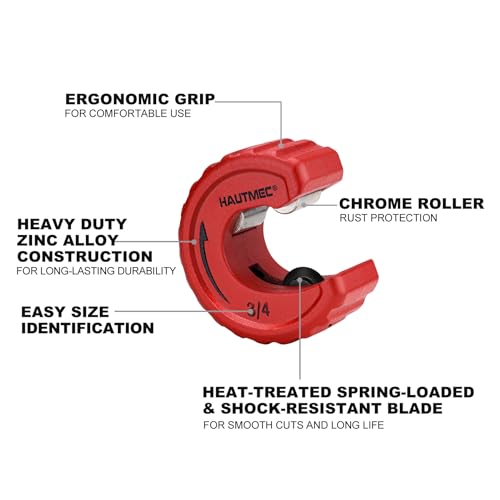 HAUTMEC heavy duty zinc alloy constructed tubing cutters in compact design for use in tight spaces, automatically tightens and cuts as it turns, with chrome rollers deliver rust protection