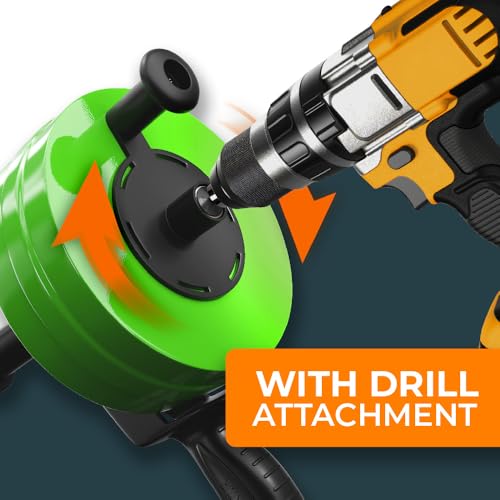 drain snake [50FT] – with drill attachment – Ideal plumbing snake for sink and drain unblocking – Solid drain auger for real DYIs! (50 FT – 1/4 inch)